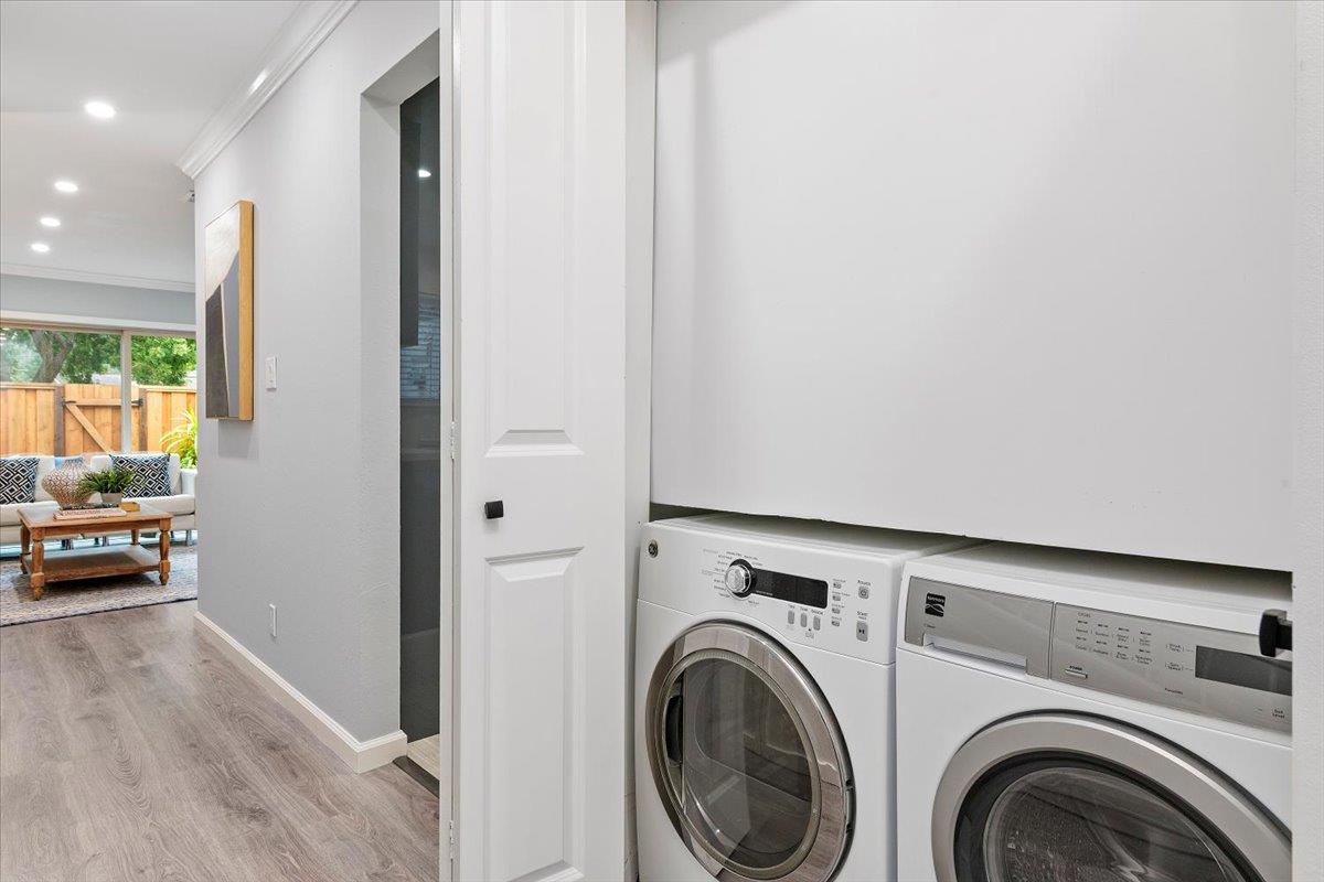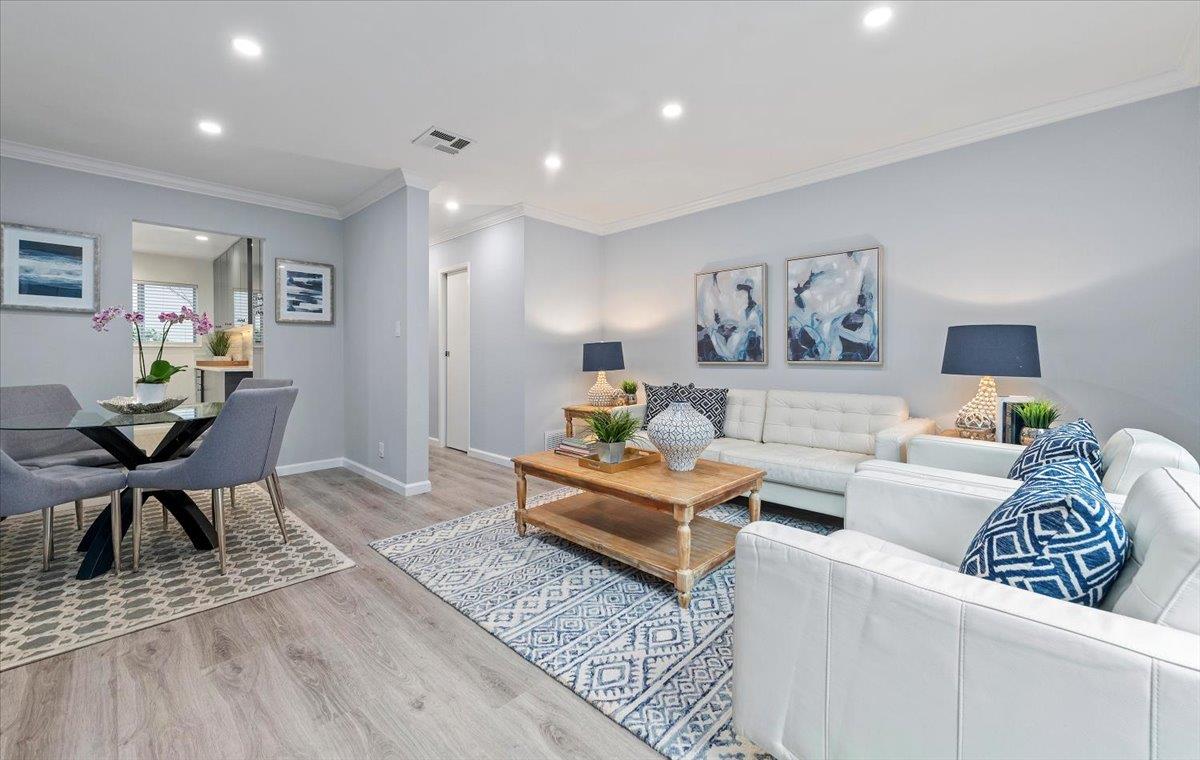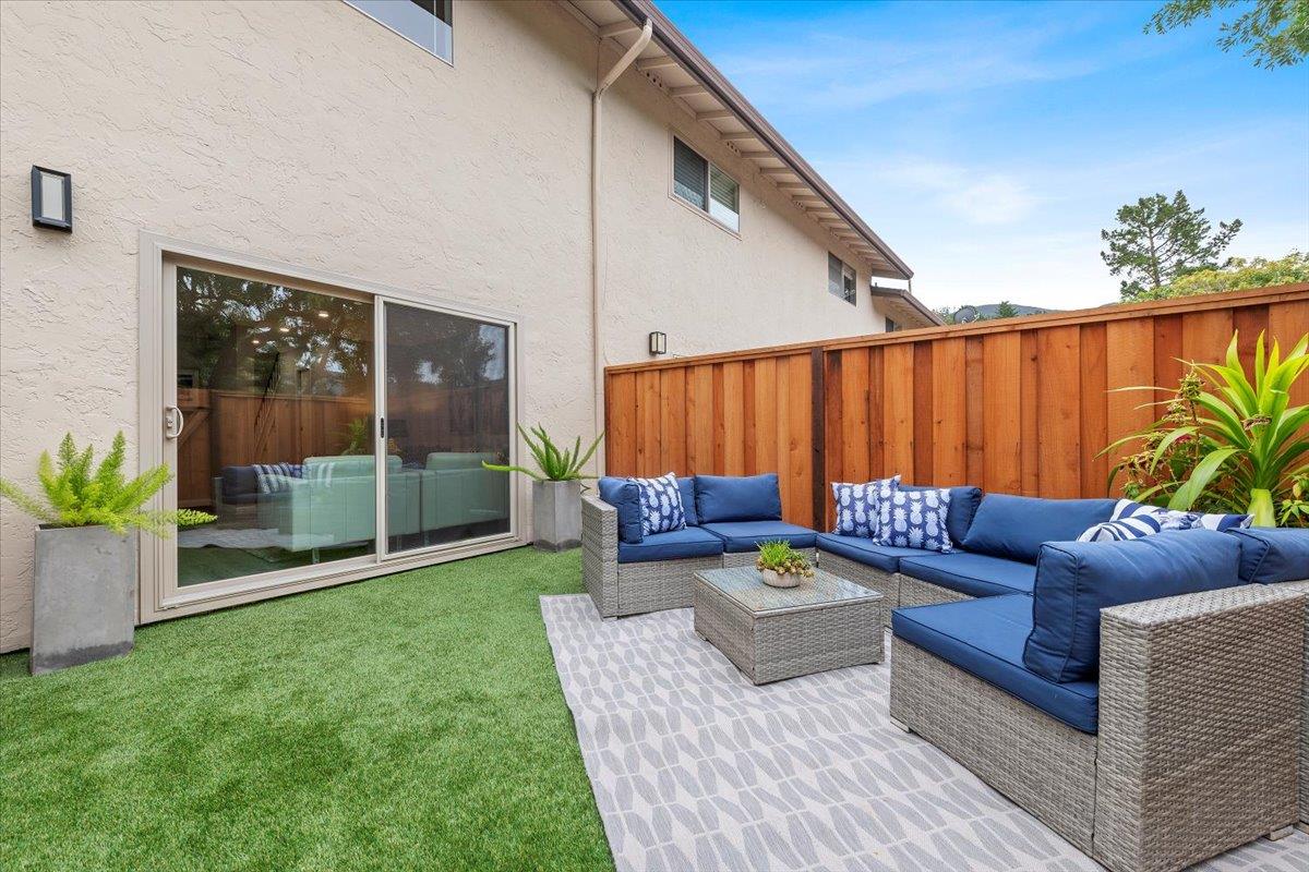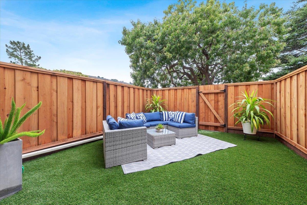 Welcome to the Park Casitas Community! Located in the highly sought-after Park Pacifica neighborhood, this two-story townhouse seamlessly blends comfort and style in a sunny, serene setting. Step inside to discover an inviting open-concept living and dining area featuring luxury vinyl flooring and recessed lighting. The remodeled half-bathroom on the main level adds a touch of elegance, while the custom kitchen showcases quartz countertops, designer-tiled backsplash, soft-close cabinetry, and a spacious pantry. Abundant natural light brightens the living room through a sliding glass door. Seamlessly extending the space to a private backyard with low-maintenance synthetic turf perfect for relaxing or entertaining. Upstairs, you'll find two well-appointed bedrooms, including a primary suite with a custom closet and a convenient linen closet. The full bathroom offers a tiled rainfall shower-over-tub for added comfort and convenience. Additional highlights include an in-unit washer/dryer, one-car garage, an assigned parking space, and outdoor private storage. Mountain views and close proximity to parks, hiking trails, shopping, dining, and Linda Mar State Beach make this bright and airy townhome the perfect place to call home!