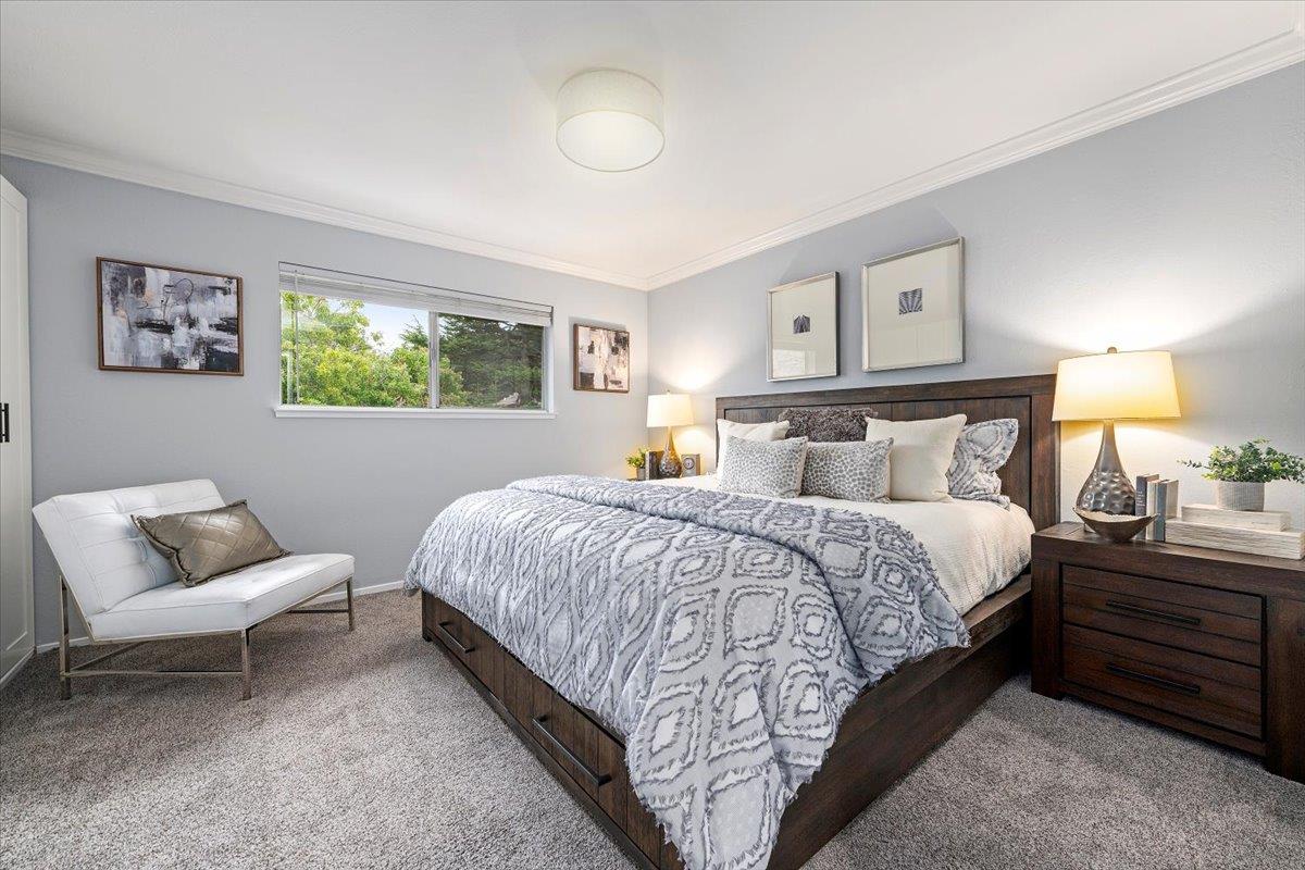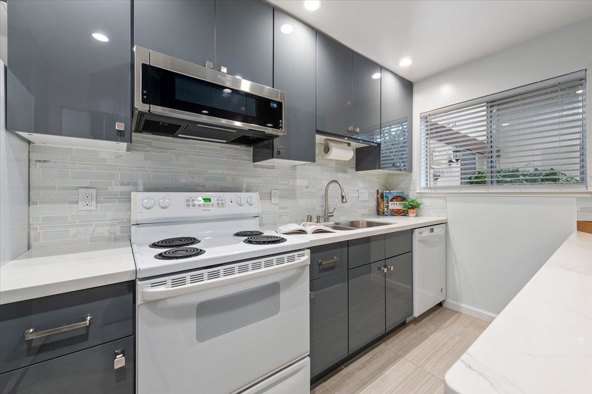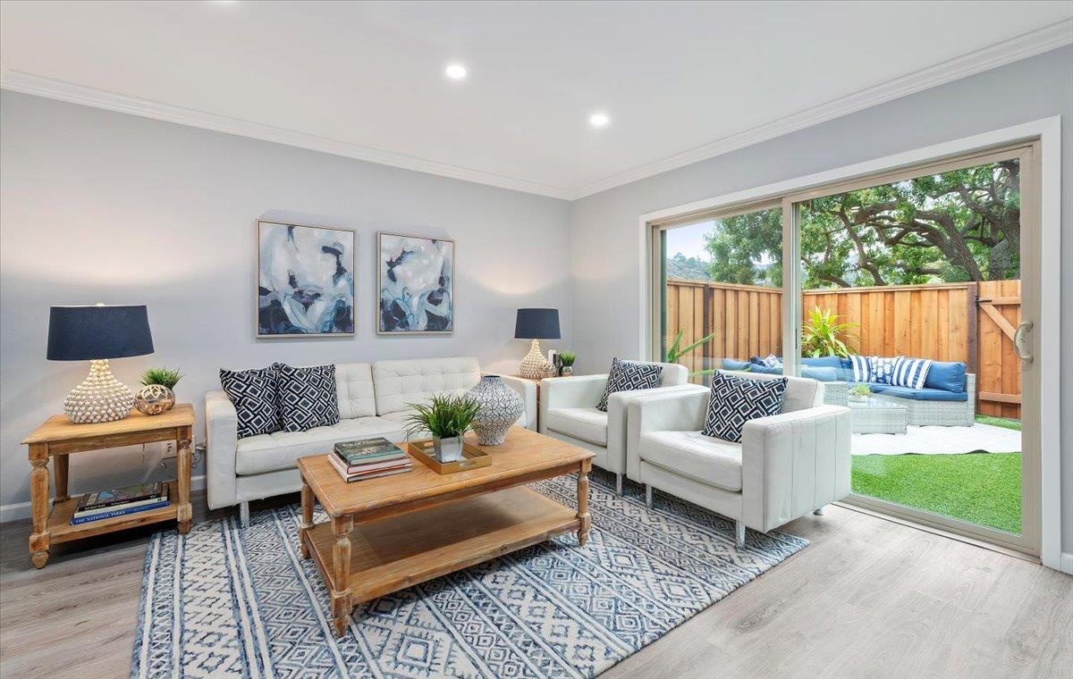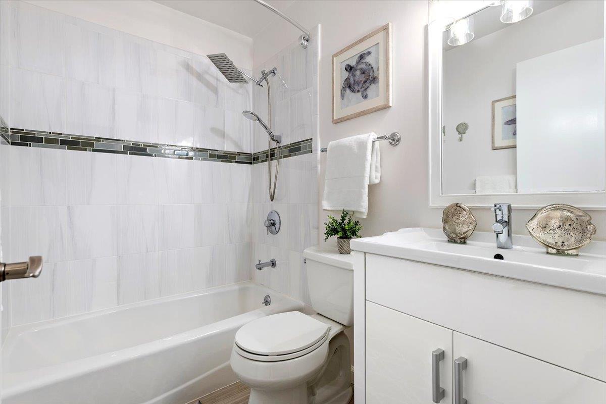 Welcome to the Park Casitas Community! Located in the highly sought-after Park Pacifica neighborhood, this two-story townhouse seamlessly blends comfort and style in a sunny, serene setting. Step inside to discover an inviting open-concept living and dining area featuring luxury vinyl flooring and recessed lighting. The remodeled half-bathroom on the main level adds a touch of elegance, while the custom kitchen showcases quartz countertops, designer-tiled backsplash, soft-close cabinetry, and a spacious pantry. Abundant natural light brightens the living room through a sliding glass door. Seamlessly extending the space to a private backyard with low-maintenance synthetic turf perfect for relaxing or entertaining. Upstairs, you'll find two well-appointed bedrooms, including a primary suite with a custom closet and a convenient linen closet. The full bathroom offers a tiled rainfall shower-over-tub for added comfort and convenience. Additional highlights include an in-unit washer/dryer, one-car garage, an assigned parking space, and outdoor private storage. Mountain views and close proximity to parks, hiking trails, shopping, dining, and Linda Mar State Beach make this bright and airy townhome the perfect place to call home!