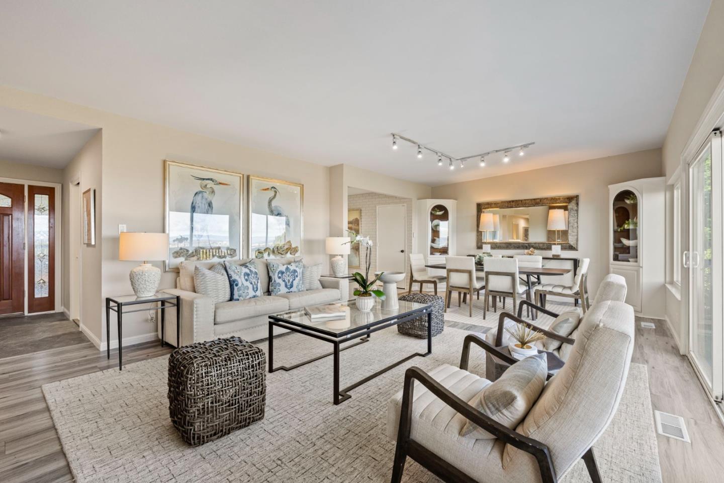 180-degree views from the heart of the home, this single-story residence in Lower Belmont offers a rare combination of immediate move-in appeal and massive future potential. The unobstructed panorama serves as the focal point the living room, dining room, and primary bedroom all specifically oriented to look out over the vista. This immersive experience extends to a brand-new deck, providing a premier vantage point for taking in the horizon. The home features a functional single-story layout, offering easy accessibility for any lifestyle. The interior has been updated with luxury vinyl flooring throughout and a brand-new kitchen equipped with shaker cabinets, quartz countertops, and new appliances. The kitchen flows directly into the dining and living areas, ensuring that the views remain the centerpiece of the home while cooking or entertaining.This property is the oversized lot of over 13,000 square feet. The sheer scale of the land provides a huge amount of options for the future, whether you are looking to build a substantial ADU or significantly expand the existing house. Hosting is made effortless by the exceptional parking capacity; in addition to the 2-car garage, the driveway easily accommodates 5 additional cars, making the home wonderful for entertaining.
