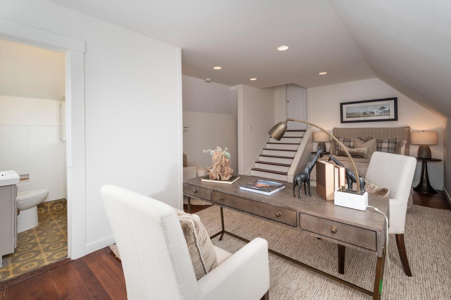 Located in sought-after Burlingame Grove, just two blocks from Broadway shops and restaurants, this circa 1937 home strikes a wonderful balance between vintage charm and contemporary livability. Well-maintained and ready to move in, with its freshly painted interiors and beautiful hardwood floors, this home also presents an opportunity to add your personal touch with a further transformation. Arranged over three graceful levels, the home features impressive living areas, an updated eat-in kitchen, plus 3 bedrooms, including a tucked-away suite on the upper-most level. The large backyard offers abundant space for play, gardening, and entertaining and comes alive in the spring with its espaliered vine-covered fence. Perfectly located, architectural character, and opportunity to customize this is Burlingame living.