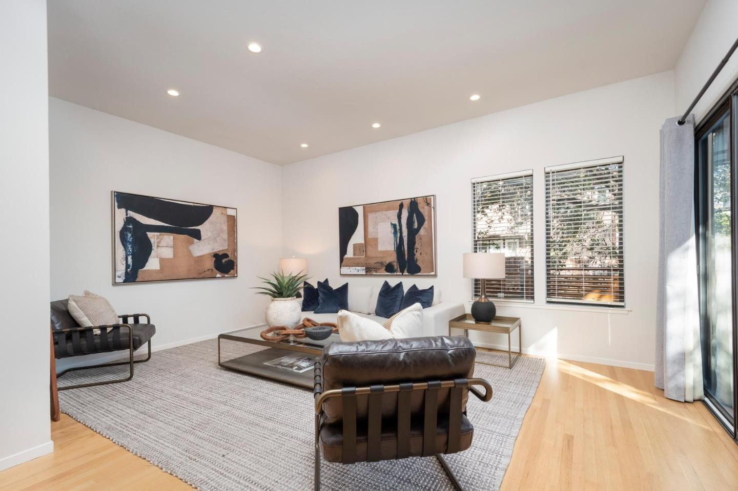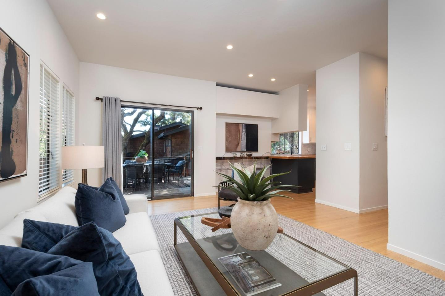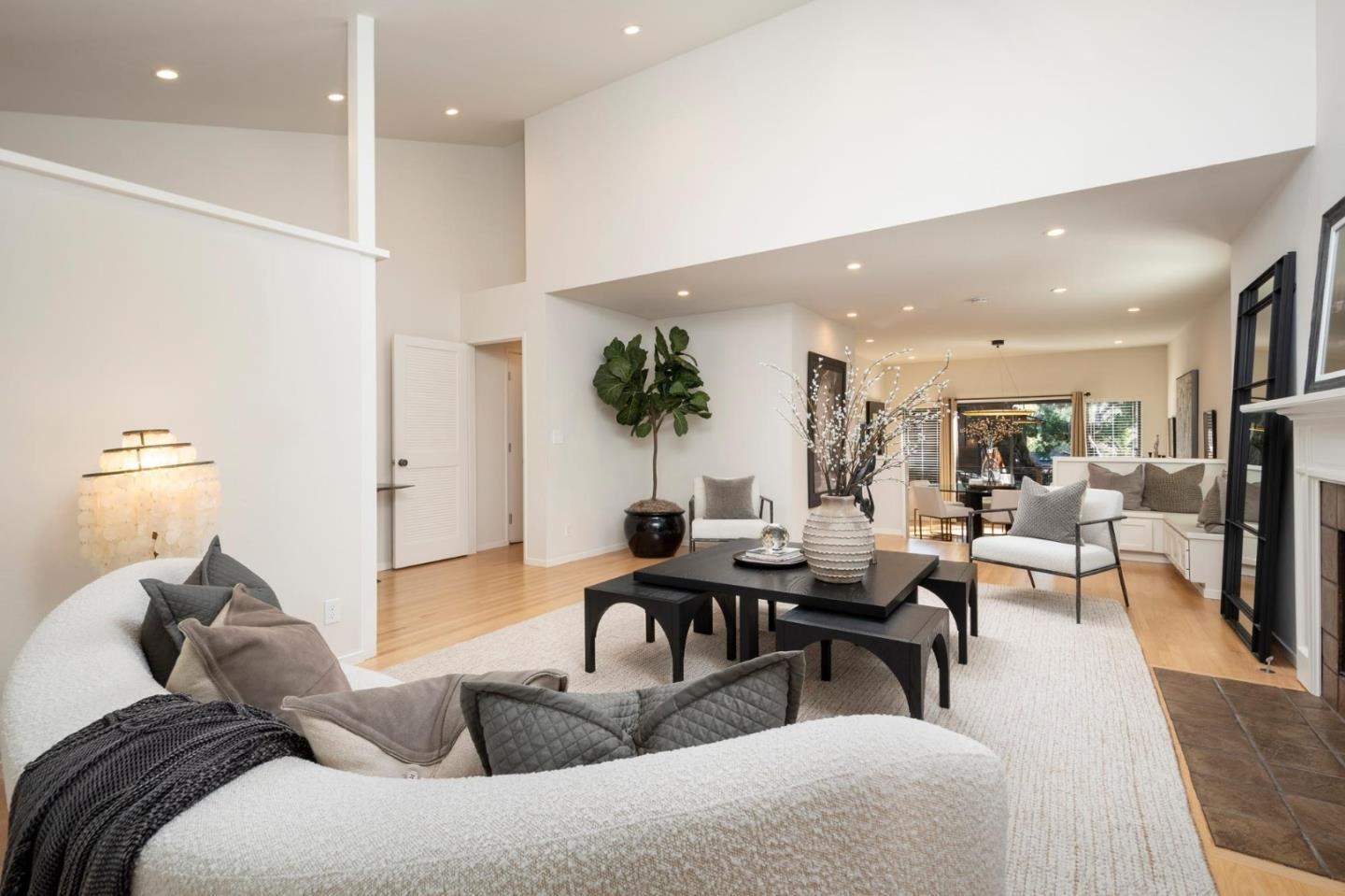 Nestled in the tranquil enclave of Stanford Weekend Acres, this captivating residence offers a true sense of living amidst nature. Upon entry, a welcoming foyer with soaring ceilings and oak hardwood floors leads to a spacious living room boasting a charming fireplace and abundant natural light from multiple skylights. The seamless flow extends to the dining room, ideal for both relaxation and entertaining. The stylish kitchen features dark blue and white cabinets, ample storage, and a picturesque view of the backyard, connecting effortlessly to the cozy family room. Step outside to expansive multi-tiered decks, perfect for al fresco dining and entertaining amidst lush greenery. Upstairs, discover a serene primary suite flooded with natural light, multiple closets, and a chic en suite bathroom. Three additional sunlit bedrooms share a designer bathroom with a chic double vanity and water closet. Enjoy the convenience of a washer and dryer room on the top level. With an attached two-car garage, previously utilized as an office, and proximity to excellent schools, hiking trails, and a vibrant outdoor lifestyle, this property epitomizes California living at its finest.