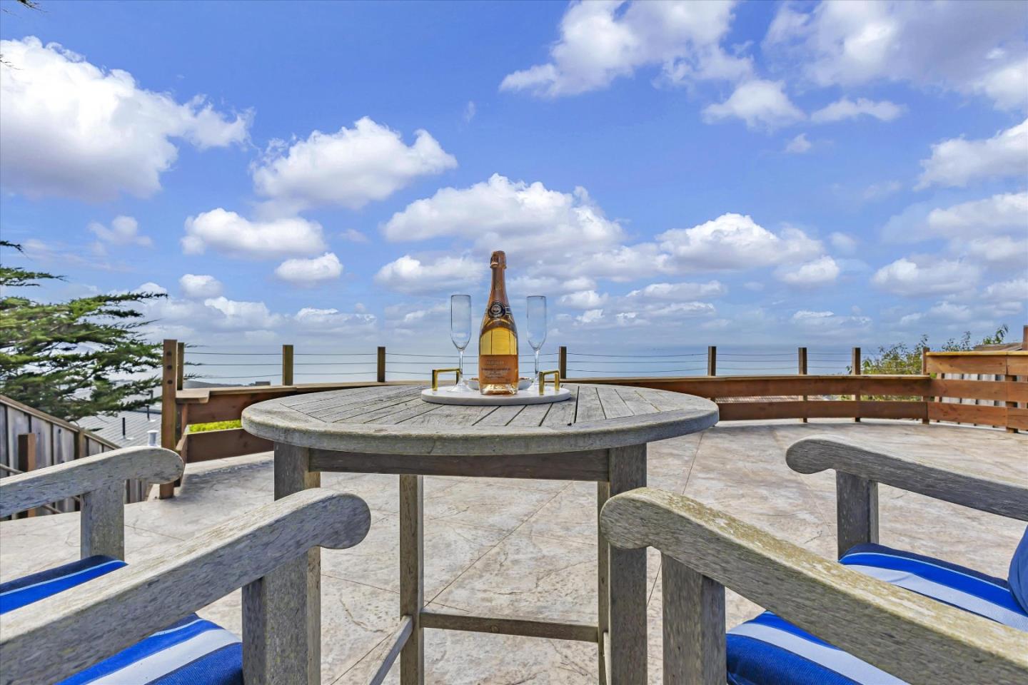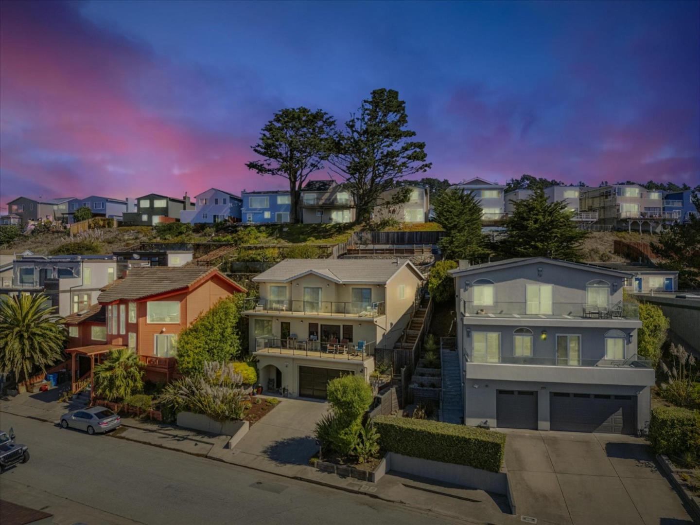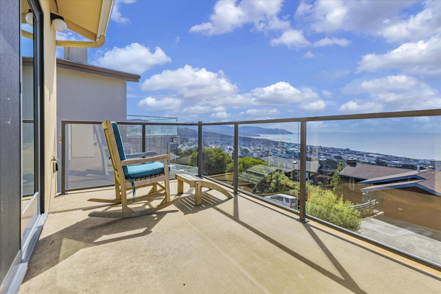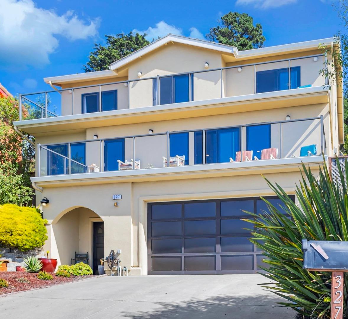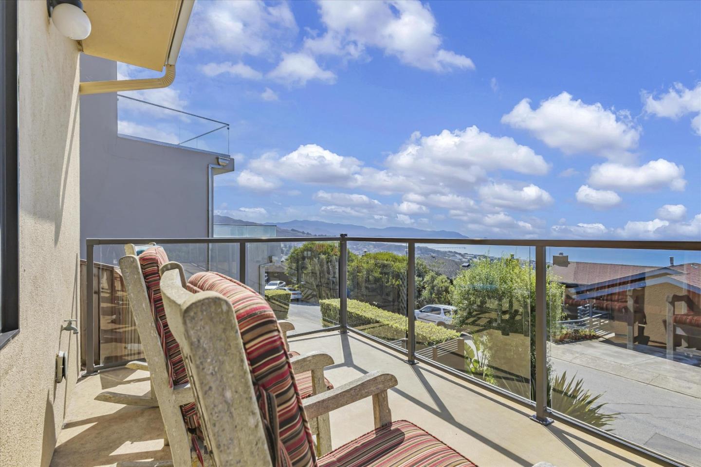 Discover coastal luxury with low fire risk due to coastal climate. Breathtaking views approx., 20 mins from San Francisco's financial district. 10 mins to BART. Perfect for busy professionals seeking balance between city life and serene ocean views. Updated home provides comfort, and awe-inspiring coastal living. Meticulously maintained offers 2,600 sq. ft. living space on beautifully terraced 5,978 sq. ft. lot. Plus bonus room off garage. Separate electrical panel for generator (Generator not Included). Features lemon and lime trees, decks have sweeping 8-mile-wide view of Pacific Ocean. Drink coffee while watching waves roll in. Entertain on decks and marvel at the coastal panorama. Bamboo floors, a chef's kitchen with quartz countertops, Thermador appliances, custom cabinetry. Living room is a sanctuary, with gas fireplace and windows that frame spectacular ocean views. Automated blinds, dumbwaiter, hurricane-resistant windows add modern convenience. Primary suite and two other bedrooms are ocean facing and open to deck. 4th bedroom overlooks fenced backyard yard. Home is equipped with a Phyn water leak detection system, fire sprinklers, and ADT security. Three-tier backyard, features 450 sq. ft. terrace perfect for entertaining. Automated irrigation for easy maintenance.