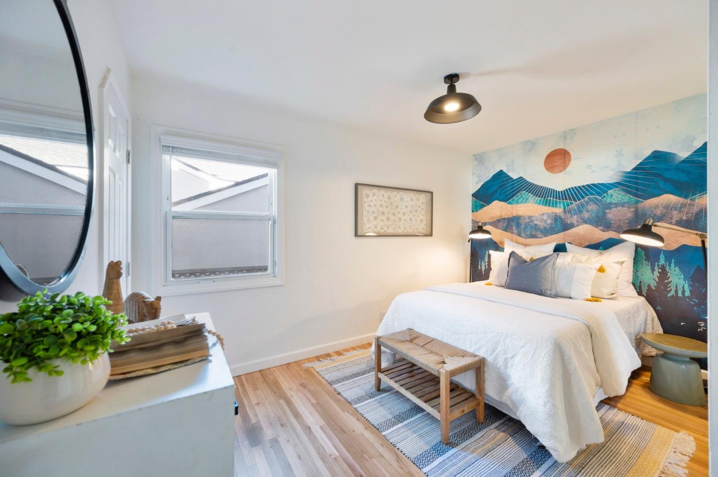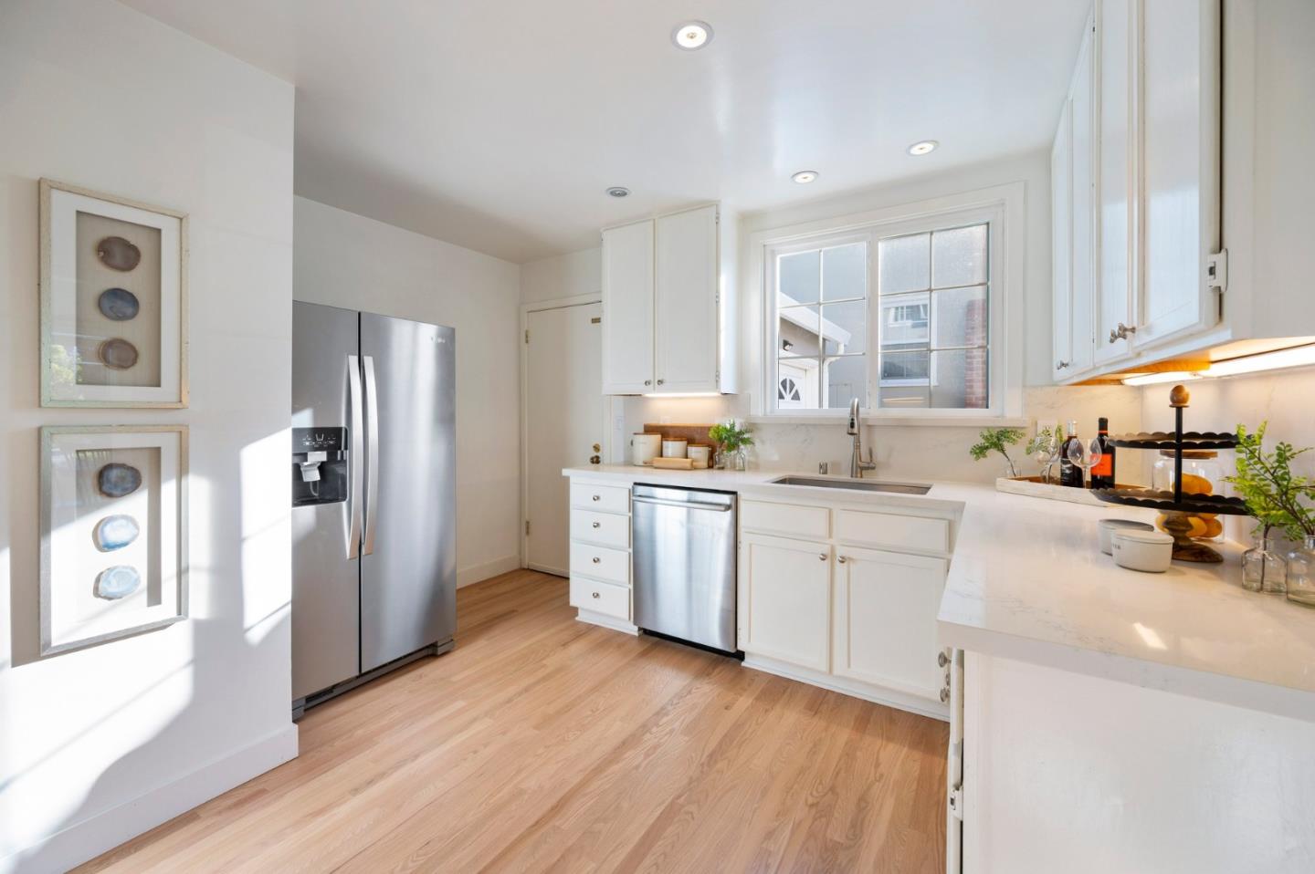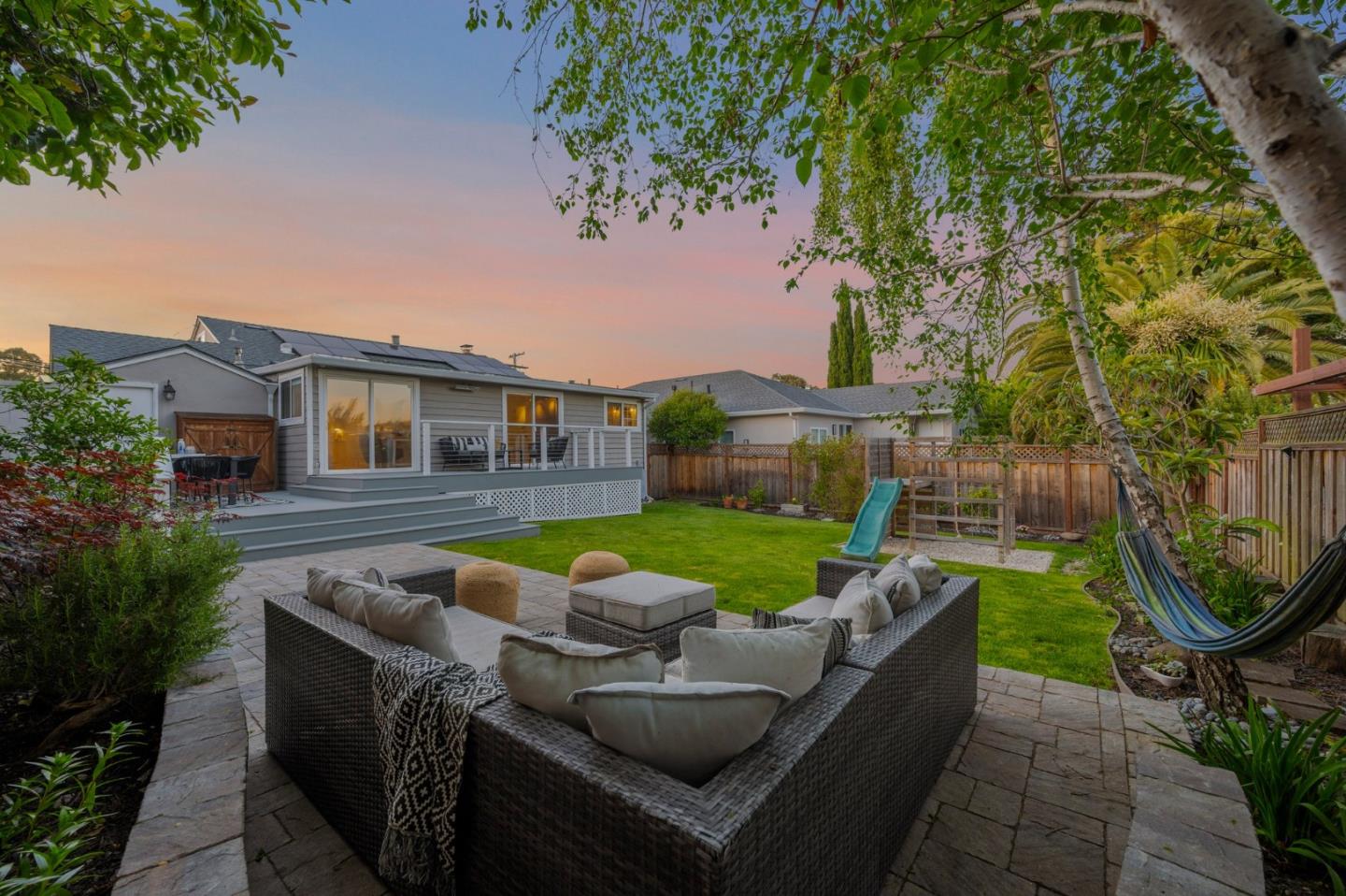 In the coveted Beresford Park neighborhood, this home offers a blend of modern comfort and classic charm. As you step inside, you're greeted by the living room with large windows, fireplace and built-in bookshelves. The adjacent dining room flows into the recently updated kitchen, boasting quartz countertops and stainless steel appliances. Off the central family room are the bedrooms, including the spacious primary suite featuring a walk-in closet and remodeled bathroom. Upstairs, a finished attic with ample storage provides an additional approx 260 sq ft (not included in the sq ft listed) and makes for a wonderful office, guest space, or playroom. Outdoors, you will find a charming front porch, a spacious rear deck & patio which provide the perfect setting for outdoor gatherings. Modern, energy-efficient amenities include owned rooftop solar panels, EV charger, sun tunnels and a tankless water heater. Additional features include A/C, dual-pane windows, and refinished hardwood floors. Attached garage with washer & dryer. Steps away from Beresford Park for even more outdoor recreation and close to both Hillsdale Mall & Laurelwood Shopping Center.