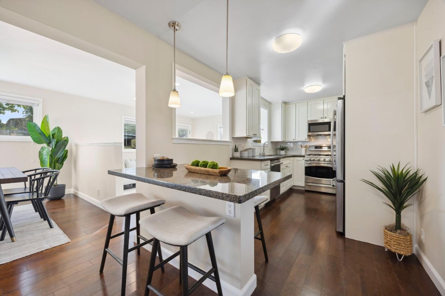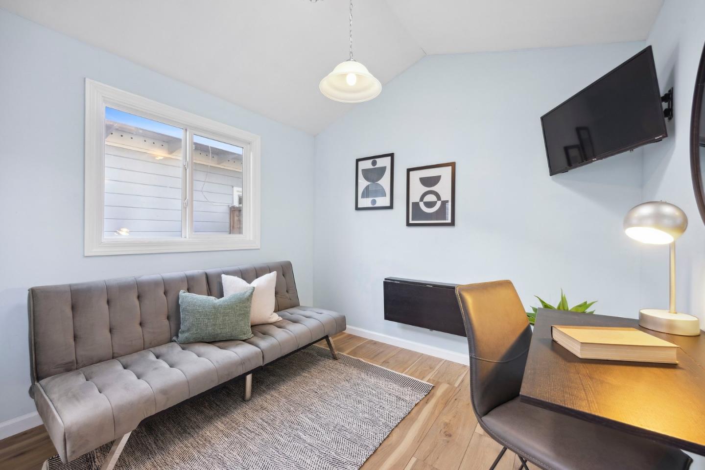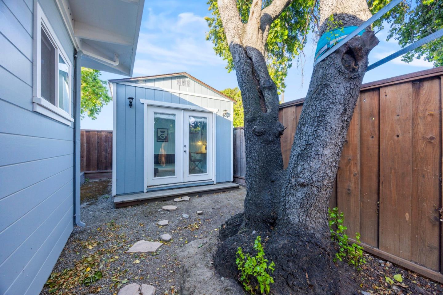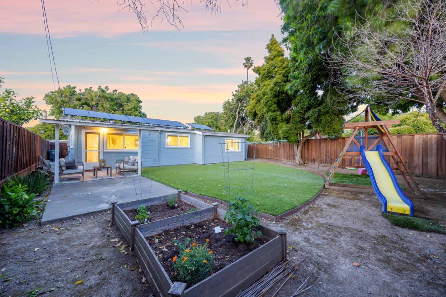 Remodeled and expanded 3 bedroom, 2 bathroom home + office on a spacious corner lot. Enter into the living room with large windows, electric fireplace and built-in bookshelves. The kitchen features white cabinets, granite countertops, gas stove & stainless steel appliances. Both the dining room & breakfast bar offer formal & casual dining options and seamlessly flow to the family room. The primary suite features a walk-in closet and updated bathroom. Step outside to a beautifully landscaped backyard with a patio, garden beds and play structure. For added versatility, a detached, finished room (approx. 100 sq ft, not included in the listed square footage) with electricity provides a perfect space for an office, home gym, or creative studio. Energy-efficient amenities include rooftop solar panels, EV charger, and tankless water heater. Attached garage with washer & dryer. Conveniently located near shops & freeways. This home has it all!