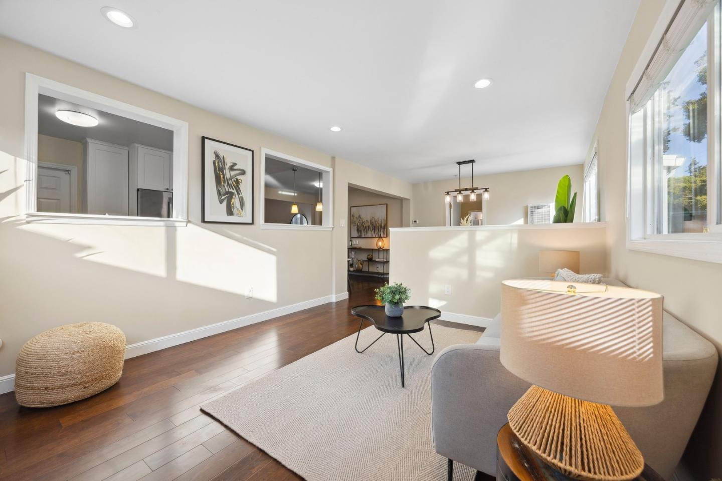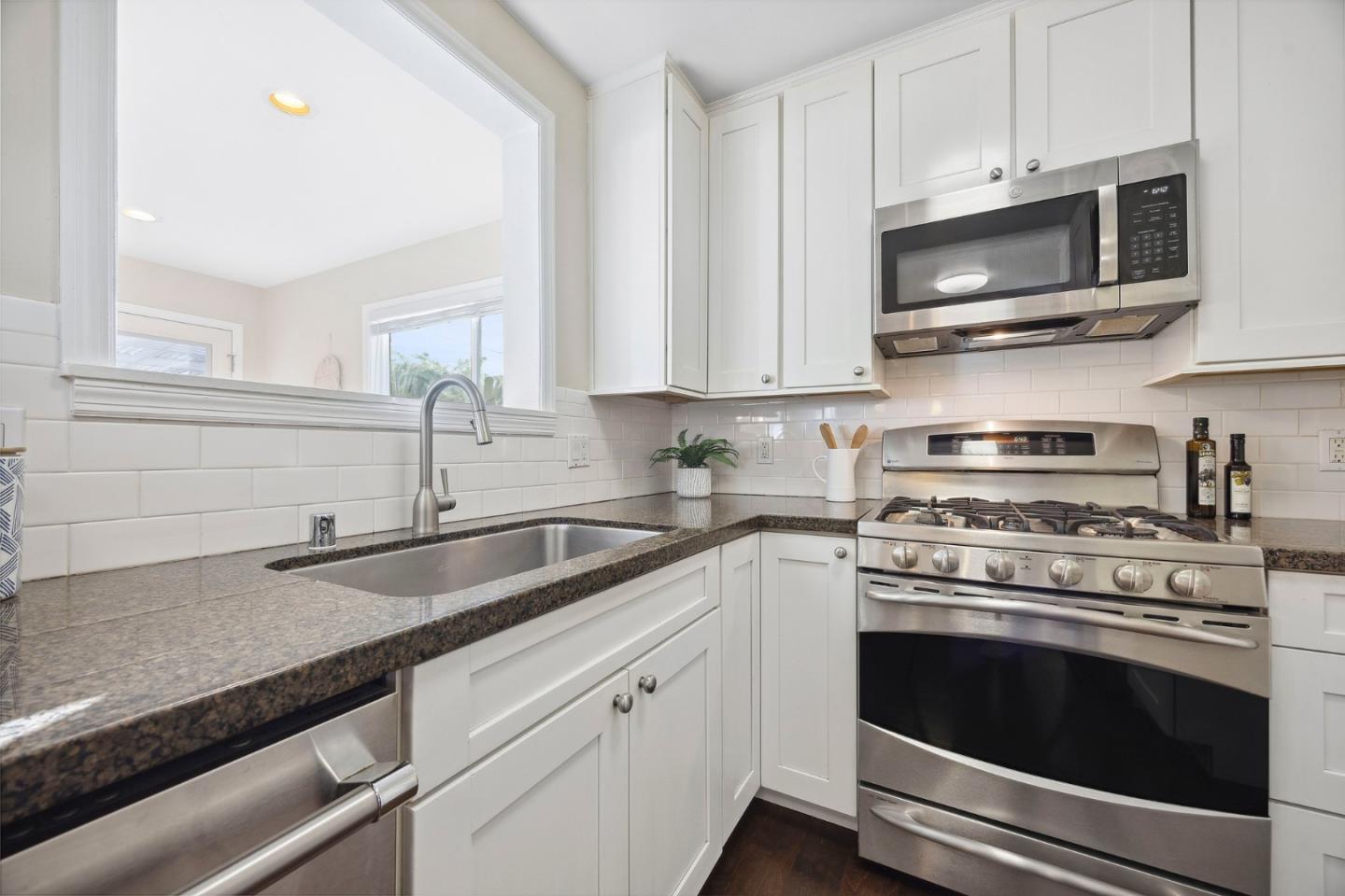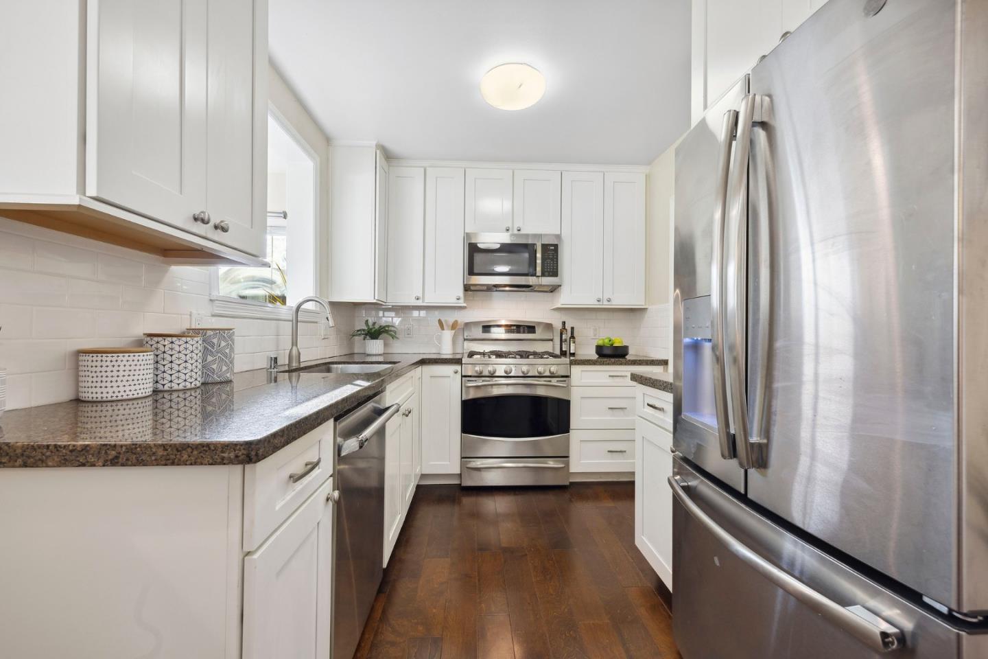 Remodeled and expanded 3 bedroom, 2 bathroom home + office on a spacious corner lot. Enter into the living room with large windows, electric fireplace and built-in bookshelves. The kitchen features white cabinets, granite countertops, gas stove & stainless steel appliances. Both the dining room & breakfast bar offer formal & casual dining options and seamlessly flow to the family room. The primary suite features a walk-in closet and updated bathroom. Step outside to a beautifully landscaped backyard with a patio, garden beds and play structure. For added versatility, a detached, finished room (approx. 100 sq ft, not included in the listed square footage) with electricity provides a perfect space for an office, home gym, or creative studio. Energy-efficient amenities include rooftop solar panels, EV charger, and tankless water heater. Attached garage with washer & dryer. Conveniently located near shops & freeways. This home has it all!