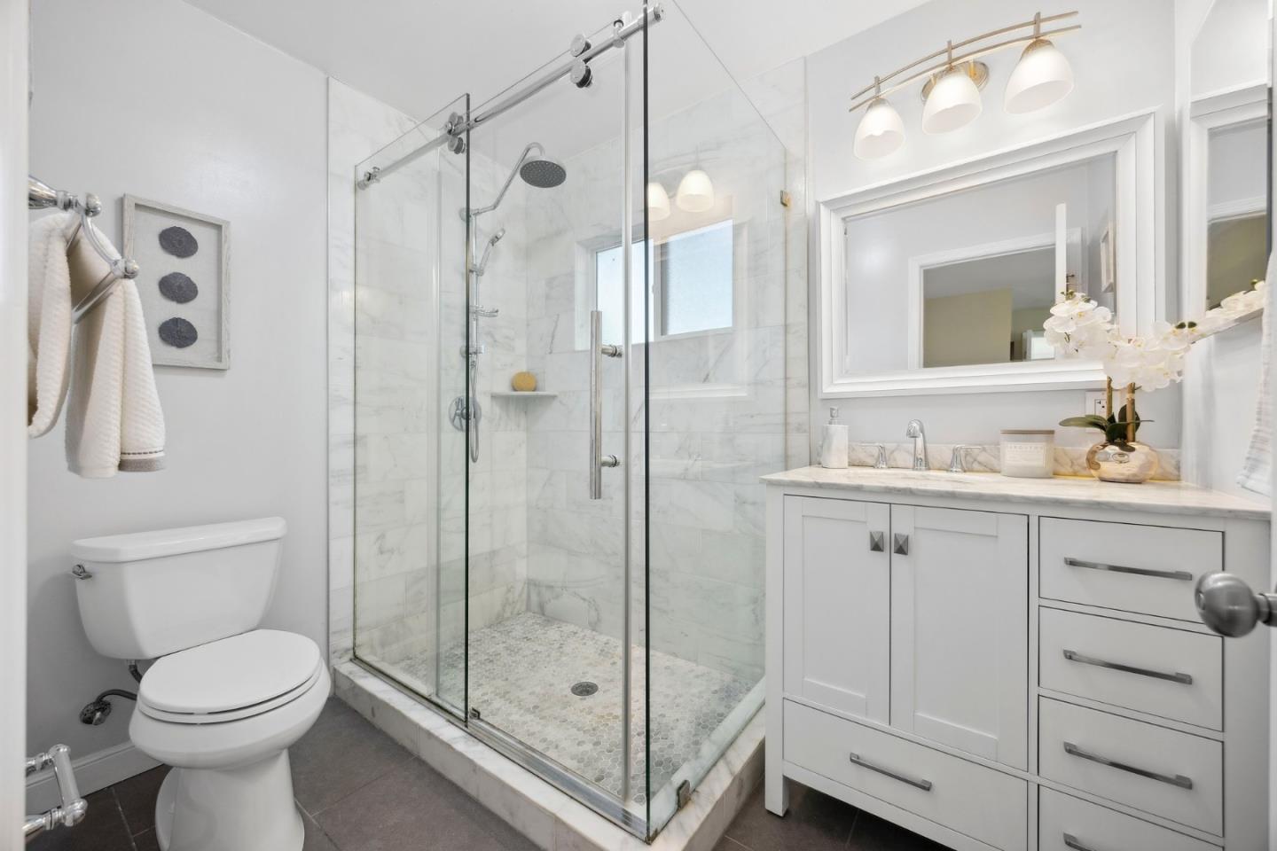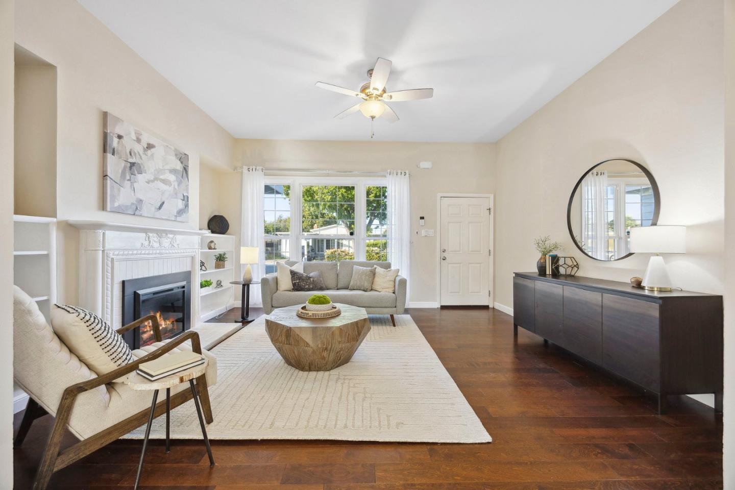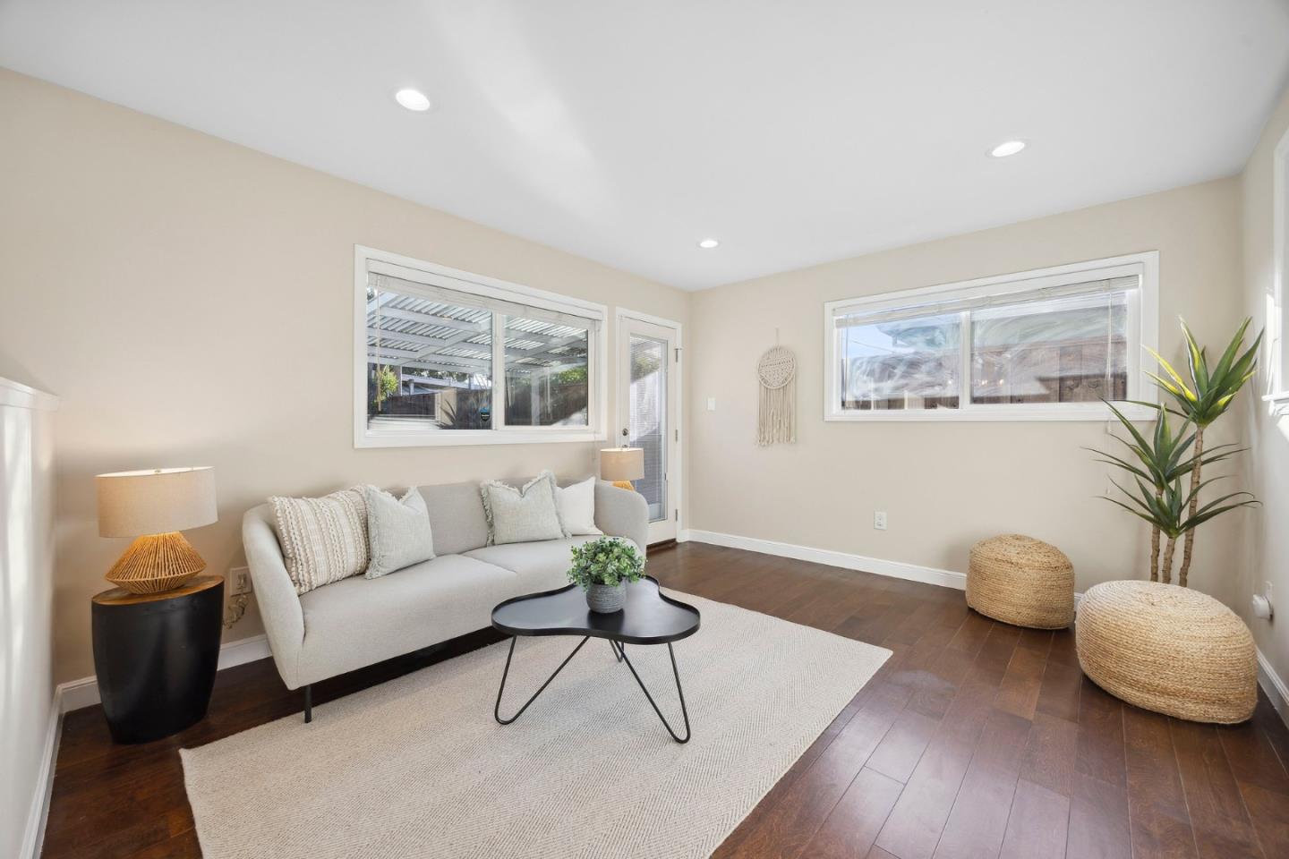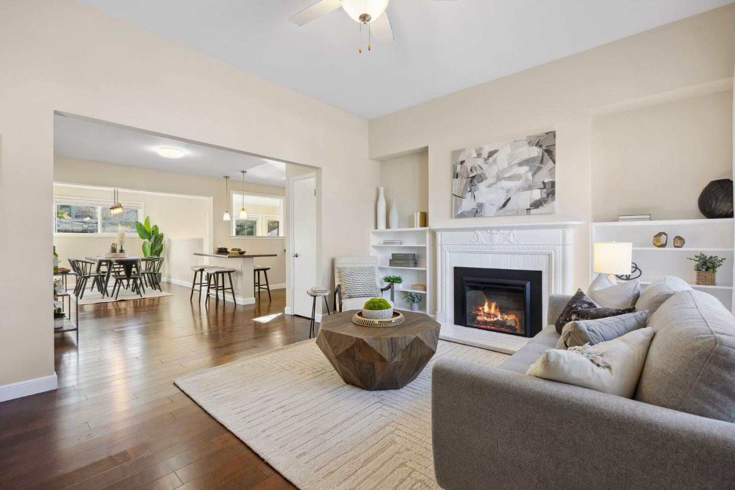 Remodeled and expanded 3 bedroom, 2 bathroom home + office on a spacious corner lot. Enter into the living room with large windows, electric fireplace and built-in bookshelves. The kitchen features white cabinets, granite countertops, gas stove & stainless steel appliances. Both the dining room & breakfast bar offer formal & casual dining options and seamlessly flow to the family room. The primary suite features a walk-in closet and updated bathroom. Step outside to a beautifully landscaped backyard with a patio, garden beds and play structure. For added versatility, a detached, finished room (approx. 100 sq ft, not included in the listed square footage) with electricity provides a perfect space for an office, home gym, or creative studio. Energy-efficient amenities include rooftop solar panels, EV charger, and tankless water heater. Attached garage with washer & dryer. Conveniently located near shops & freeways. This home has it all!